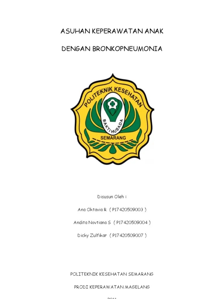 Asuhan keperawatan pada bayi dengan bronchopneumonia di ruang kenanga.